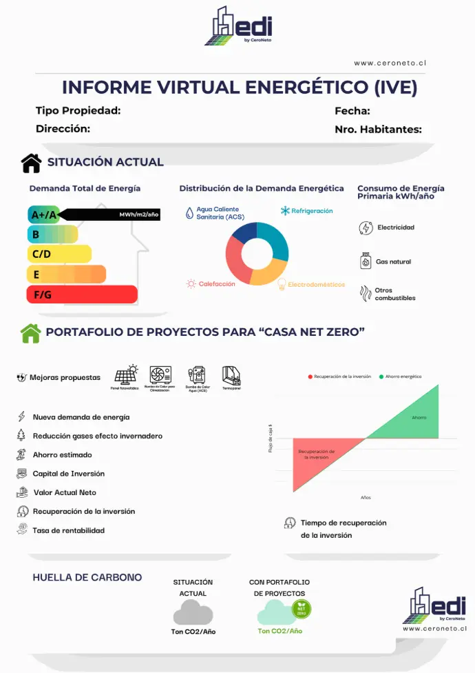 Obtenga un informe energético y financiero detallado del portencial de reducción de consumo y emisiones de su vivienda con propuestas concretas de mejora con el cálculo de su impacto.